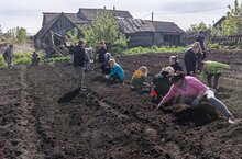 Все ученики и учителя школы дружно вышли на посадку пришкольного участка. Фронт работы разделили: одна группа сажала картофель, другая - грядки с луком, морковью и свеклой.