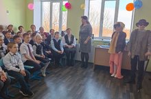 Сегодня учащиеся школы с 1 по 6 класс посмотрели постановку мюзикла на произведение татарского писателя Г. Тукая "Коза и овца". На сцене Тетюшского РДК выступили артисты Татарского государственного театра кукол "Экият".