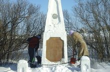 Ученик 4 класса Морозов Кирилл и учительница Гарифуллина А.К. провели уборку территории обелиска от снега.