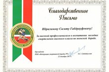 Благодарственным письмом Федерации Спортивной борьбы награжден тренер-преподаватель по Спортивной борьбе (Вольная борьба) Ибрагимов Сагит Габдрауфович