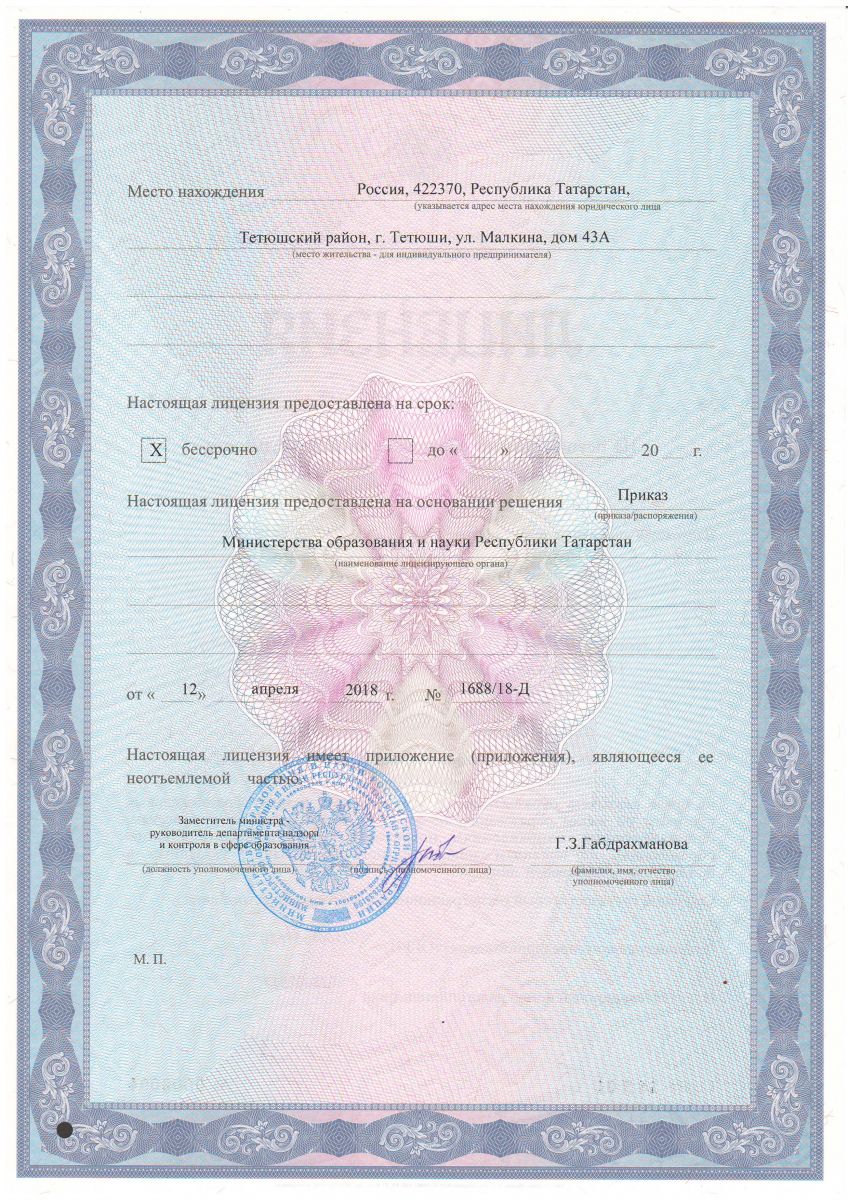 Адрес: 422370 Тетюшский муниципальный район г.Тетюши ул. Малкина д.43 А