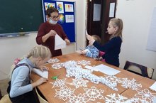 Мастер - класс по изготовлению снежинок был проведен 17 декабря с учащимися 2 класса художественного отделения Детской школы искусств. Преподаватель Кузнецова Д.И. в предварительной беседе рассказала о чуде природы - снежинке, которая образовалась путем кристаллизации капель воды на морозе, «представляет собой необычайно красивую, шестиугольную, правильную форму. Среди снежинок также встречаются и круглые с ажурными краями». Педагог показала ребятам большое количество образцов снежинок. Мастера декоративно - прикладного искусства, отталкиваясь от природных форм создают неповторимые произведения искусства, напоминающие снежинки. Вязаные белыми нитками круглые салфетки являются украшением любого интерьера. Искусство вырезания снежинки непростое, для этого нужно знать ряд правил: выбор бумаги, ножниц, правильное нанесение рисунка для начинающих, этапы вырезания. Первые снежинки получились не совсем красивыми. Были названы ошибки и даны пожелания, как добиться ажурности. В результате, каждая снежинка получилась неповторимой. Такие увлекательные занятия воспитывают в детях терпеливость, усидчивость, мастерство и дают возможность полету фантазии.