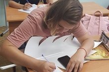 23 сентября в Детской школе искусств прошел необычный урок, приуроченный к году Театра по теме: «Рисуем театральную афишу». Творческая мастерская под руководством преподавателя художественного отделения Кузнецовой Д.И. сразу увлекла учащихся. Сначала ребята познакомились с историей создания театров в России, посмотрели слайды оформления анонсов различных театральных спектаклей и премьер. Преподаватель предложила несколько вариантов театральных афиш.