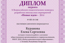 Дипломом Лауреата X Всероссийского конкурса разработок внеклассных мероприятий «Новые идеи» награждена Куранова Елена Сергеевна, методист отдела по работе с детскими общественными организациями и старшеклассниками Центра дополнительного образования детей.
