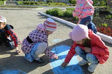 Нетрадицонно прошло занятие в группе Подснежник. Ребята в сопровождении педагога дополнительного образования детей Шитенковой Н.А. вышли в сквер Центра дополнительного образования для того, чтобы все свои творческие замыслы изобразить на асфальте. Рисунки детей при помощи мелков получились яркими и красочными.