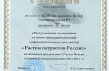 Наша команда Центра дополнительного образования детей на Республиканских соревнованиях по военно-прикладной подготовке молодежи "РАСТИМ ПАТРИОТОВ РОССИИ" заняла 2 место (педагоги Молчаева Анна Владимировна и Никоноров Дмитрий Владимирович).