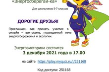 В целях пропаганды и популяризации энергосберегающего образа жизни, развития энергетики, популяризации профессий топливно-энергетического комплекса в Республике Татарстани в поддержку Всероссийского фестиваля энергосбережения и экологии #ВместеЯрче-2021Министерство промышленности и торговли Республики Татарстансовместно с ГАУ «Центр энергоресурсоэффективных технологий Республики Татарстан» проводит интеллектуально-познавательной энерговикторины «Энергосберегай-ка».