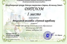 Вокальное объединение «Лунный кораблик» (педагог Зяббарова Э.Н.), награждено Дипломом за 1 местоРеспубликанского конкурса детского творчества «Страна, где только Лето!» в номинации «Мелодии лета (вокальные ансамбли)». Конкурс проводился государственным бюджетным учреждением дополнительного образования «Республиканский центр внешкольной работы» в целях создания условий для самовыражения детей посредством художественно-творческой деятельности. В Конкурсе приняло участие 82 участника из 23 образовательных организаций и 9 территорий Республики Татарстан.