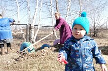 Субботник по очистке детской площадки от сухой травы и листвы.