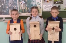 Учащиеся 2Б класса: Майоров Е., Назмиев Т., Тимершина А. приняли участие в акции «Каждой птице - свой дом». К встрече желанных гостей дети подготовились - изготовили вместе с родителями добротные домики - скворечники.