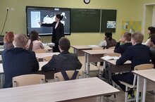 Гости экологического мероприятия сотрудники ГПКЗ «Долгая Поляна» Похлёбкин Е.Н и Сорокина Л.М. провели Экологические уроки для учащихся 9б и 1а классов. Ребята узнали о роли природного заказника на территории Тетюшского района. Ученики 1а класса участвовали в экологической игре.