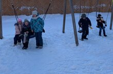 Несмотря на морозную погоду, дети вышли на прогулку, катались на горках, на качелях, веселились, играли.