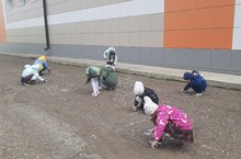 В рамках акции «Осенняя неделя добра» ученики групп продленного дня нарисовали на асфальте рисунки "Пусть весь город заиграет новыми красками"