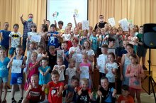 С утра были занятия по интересам, после завтрака часть детей направилась в школьную библиотеку, где помогали Зубрилину Н.В. разобрать учебники на полках и проштамповать новые учебники, а остальные ребята поливали клумбы. Сегодняшний день в лагере был посвящен – Дню молодежи. Этот день считается праздником творчества, энергии, познания и реализации самых смелых замыслов. Поэтому в лагере был организован конкурс рисунков на асфальте на тему «Вместе мы едины», экскурсия в школьный музей, спортивные игры и занятия по интересам. На линейке были вручены Благодарственные письма от Начальника отдела культуры за участие ребят в районном мордовском празднике «Валда шинясь» и районном празднике «Сабантуй-2021».
