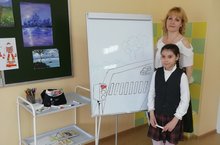 Совместный мастер-класс с учениками 5 класса и воспитанниками группы продленного дня (воспитатель Хамидуллина Г.Р.) провела учитель ИЗО Лазарева Л.Н., рассказав о секретах интуитивного рисования на флипчарт доске. Ученицы 4 класса показали, какие прекрасные рисунки могут получиться таким способом.