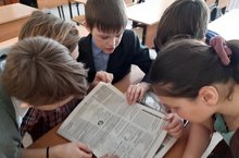 Ученики 5в класса в первый день весенних каникул собрали информацию для стенда "Юбилей любимого города"