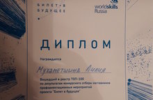 Учитель МБОУ "Тетюшская СОШ 1 им. Ханжина П.С" Мухаметшина Л.Г. приняла участие во Всероссийском конкурсе профориентационных практик в рамках проекта "Билет в будущее" и по результатам конкурсного отбора вошла в реестр ТОП-100 лучших наставников РФ. -