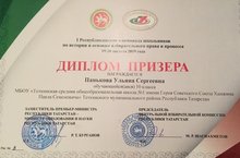Обучающаяся нашей школы Панькова У. стала призёром I Республиканской олимпиады школьников по истории и основам избирательного права и процесса, проходившей в г.Казань 19-20 августа.