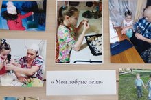 Учащиеся 1 Б класса (классный руководитель Сумбаева В.И.) организовали фотовыставку "Мои добрые дела". Ребята рассказали, как помогают взрослым.