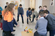 Волонтеры отряда «Инициатива» (8Б класс, классный руководитель Антипова Л.А.) провели подвижные игры для младших школьников в спортивном зале.