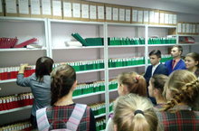 Учащиеся 11Б класса посетили архив ЗАГС. Цель– популяризация архивных материалов. Начальник Отдела ЗАГС в диалоговой форме общения подробно рассказала о работе архива. (кл.рук-ль Чернова Е.В.)