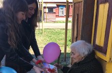Обучающиеся 9В класса (кл.рук.Л.Г.Мухаметшина) поздравили труженицу тыла Миронову Анастасию Петровну с Днем Победы!