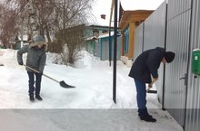 Учащиеся 8А класса (классный руководитель Хасанова Г.Р.) приняли активное участие по очистке снега от двора блокадницу Ленинграда Бибиной З.Х.