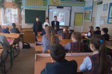 В 1 Б классе (кл.рук. Кондакова Г.Б.) провели игровую минутку по теме: "Большие права - маленьким" старшеклассники Марат и Валерия, учащиеся 10 Б класса (кл.рук. Чернова Е.В.). Ребята познакомились с правами и обязанностями в развлекательной форме "Что такое хорошо и что такое плохо". В игре - ассоциация "Ваше права", ребята уверенно отвечали какое право ассоциируется с тем или иным предметом. Рефлексией стала разминка "Ты мой друг и я твой друг".