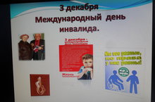 В рамках проведения декады инвалидов, приуроченной к Международному дню инвалидов в 4 А классе (кл. рук. Трофимова Н.П.) прошёл классный час «Особенные люди. О способностях и возможностях в творчестве». Были проведены игры: «Угадай кто это?», «Разные приветствия», дискуссия «О мечте». Дети прослушали и обсудили рассказ о жизни Л.С. Пронягина – советского математика, академика АН СССР, потерявшего в 14 лет зрение.