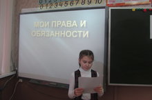 В рамках месячника Правовых знаний в 4Б классе( классный руководитель Сумбаева В.И.) прошел классный час на тему «Мои права и обязанности», на котором говорили о том, что значит быть гражданином, о главе государства, об устройстве государства. Ребята повторили о правах ребенка, закрепили знания полученные на уроке окружающего мира.