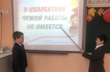 Ученики 7 В класса стали участниками концерта, посвященного Дню Учителя. Левин Я., Старостин К. выступили в составе инструментального ансамбля, а Мавлиханова Р. и Гафурова К. – в составе вокального ансамбля «Сәйлән”.