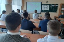 Профориентационную беседу с учащимися 10-11 классов провел выпускник школы Татаркин Никита Валерьевич.