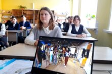О значении родного языка говорили учащиеся 5в класса на уроке литературы (учитель: Л.Г.Шарафиева). В рамках международного дня родных языков дети презентовали свои работы по проекту "Ожившая картина" на своём родном языке.