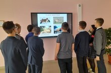 Сегодня в школе, в биологическом холле, весь день работала слайдовая презентация с фотографиями редких и исчезающих видов животных. На перемене учащиеся школы могли подробно познакомиться с редкими видами животными, занесенными в Красную книгу России.