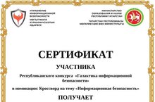 Обучающиеся 7а класса (кл.рук.Л.Г.Мухаметшина) принимают активное участие в республиканском конкурсе "Галактика информационной безопасности" в номинации "Кроссворд".