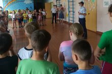 23 июня в лагере был объявлен «День дорожной безопасности». После традиционной зарядки и завтрака дети собрались на утреннюю линейку. На встречу к ребятам был приглашён старший инспектор по ИАЗ ГИБДД ОМВ России по Тетюшскому району Мостяков Д.А. Он напомнил детям правила дорожного движения, безопасного поведения на улицах и дорогах, правила нахождения на остановках общественного транспорта. Денис Александрович пожелал ребятам хороших каникул.