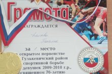 С 5 мая по 8 мая ученица 4Б класса Долгова Татьяна находилась в Краснодарском крае, где приняла участие в открытом первенстве по спортивной борьбе, посвящённом 76-летию Великой Победы. Наша Таня заняла 1 место в своей весовой категории. Классный руководитель Михеева И. Ю. и одноклассники от души поздравляют Таню с очередной победой и желают дальнейших спортивных достижений! Молодец! Так держать!!!