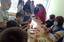 22 апреля для учащихся 5Б класса (классный руководитель Трифонова Е.И.) работники РДК провели тематический час "Народные промыслы", в рамках акции "Народная культура для детей и подростков". В ходе мероприятия дети познакомились с русскими народными промыслами, изделиями декоративно-прикладного искусства и их отличительными чертами, приняли участие в мастер-классе по изготовлению куклы-оберега и коврика из ярких лоскутных нитей.