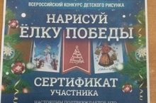 Сертификатом участника Всероссийского конкурса детского рисунка «Нарисуй ёлку Победы» награждён Юдин Кирилл, ученик 2Б класса (классный руководитель Михеева И. Ю.). Молодец! Дальнейших творческих успехов!