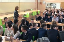 16 апреля 2018 года в 7Б классе состоялся «Урок мужества», посвященный Великой Отечественной войне, во время которого был представлен проект «Пишем Книгу Памяти вместе». Данный проект разработан в рамках участия в конкурсе «Библиотечные горизонты». На протяжении двух месяцев проводилась исследовательская работа по сбору информации о прадедах-участниках ВОв. Подготовлена презентация и защита данного проекта.