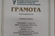 Поздравляем! 20.11.2023 Классный руководитель Михеева И.Ю. и обучающиеся 3Б класса поздравляют Семёнову Анжелу с победой в муниципальном этапе республиканского конкурса поделок "Я и Красная книга". Желаем дальнейших побед!