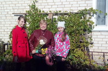 Мухтарова Г.И. янына бардылар. Кызлар чәчәкләр һәм сыйныф җитәкчесе белән бергә бәйләгән мунчала илттеләр, алар үзләренең бар эшкә дә оста булулары белән ветеран укытучыны да сөендерделәр.