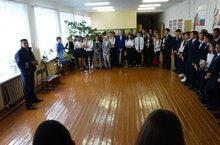После экскурса в историю, дети совершили «Обряд посвящения в восьмиклассники». Зачитали клятву ученика.