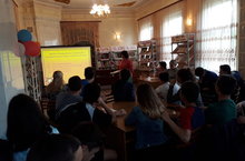 Воспитанники с удовольствием работали на пришкольном участке. После вкусного завтрака всем лагерем пошли на экскурсию в Детскую библиотеку, где с нами провели викторину-игру, посвященную к «Дню скорби». Участвовали две команды: «Динамит» и «Экстрим». Ребята показали отличные знания о Великой Отечественной войне. Знания были ровные - и в итоге победила дружба.