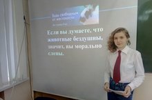Сегодня учащаяся 10 класса Ратникова Елизавета выступила перед одноклассникаами со своей исследовательской работой по теме «Красота без жестокости не призыв, а повод задуматься…» Она обосновала принципы, по которым она выбрала эту тему для своей работы:
