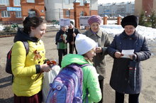 Никто из прохожих не отказался поучаствовать в акции, многие говорили спасибо за напоминание о том, что необходимо заранее подготовить фотографию солдата для участия во Всероссийской акции «Бессмертный полк». Ребята же довольные, с чувством выполненного долга, раздав все листовки и георгиевские ленточки, отправились по домам.