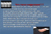 Коррупция – преступная деятельность, основанная на злоупотреблении должностными полномочиями, продажности политических (и не только) лиц и выражающаяся во взяточничестве, казнокрадстве и т.п. Коррупционный процесс всегда имеет две стороны – лицо, дающее взятку, и лицо, берущее взятку.