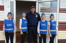 После праздника все сфотографировались на память в зале, где проходило посвящение, а мы, ЮИДовцы, ещё сфотографировались и с сотрудником ГИБДД у здания школы.