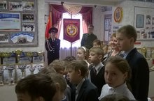 В гостях у кадетов. 21.04.2016 Патриотизм воспитывается не только в стенах своей школы… Богатый материал, дополненный живым словом воспитанников школы-интерната надолго останется в памяти учеников 3а (классный руководитель Костюхина Е.К) и 4б (классный руководитель Корнукова Г.Ф) классов, посетивших музей Кадетской школы.