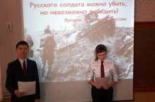3февраля в рамках месячника оборонной и спортивно- массовой работы., учащиеся 9Б класса Чашина А. и Унюкова М. на классном часе выступили по теме: "Сталинградская битва". Во время выступления использовались интересные кадры событий того времени.